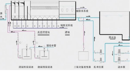 3.一體化凈水設(shè)備基本構(gòu)造包括:主體凈水設(shè)備(含混合器、絮凝裝置、沉淀裝置、過濾裝置),加藥裝置,消毒裝置,自動(dòng)控制系統(tǒng)等。